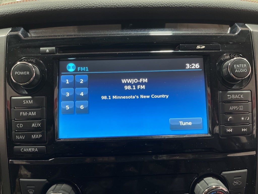 - Radio: NissanConnect w/Navigation & Mobile Apps -inc: 7" color display, AM/FM/CD, MP3 auxiliary input, USB connection for iPod interface and other compatible devices, Bluetooth® hands-free phone system, SiriusXM Traffic, SiriusXM Travel Link (weather, fuel prices, movie listings and stock info), Nissan voice recognition for navigation and audio and NissanConnect Services powered by SiriusXM