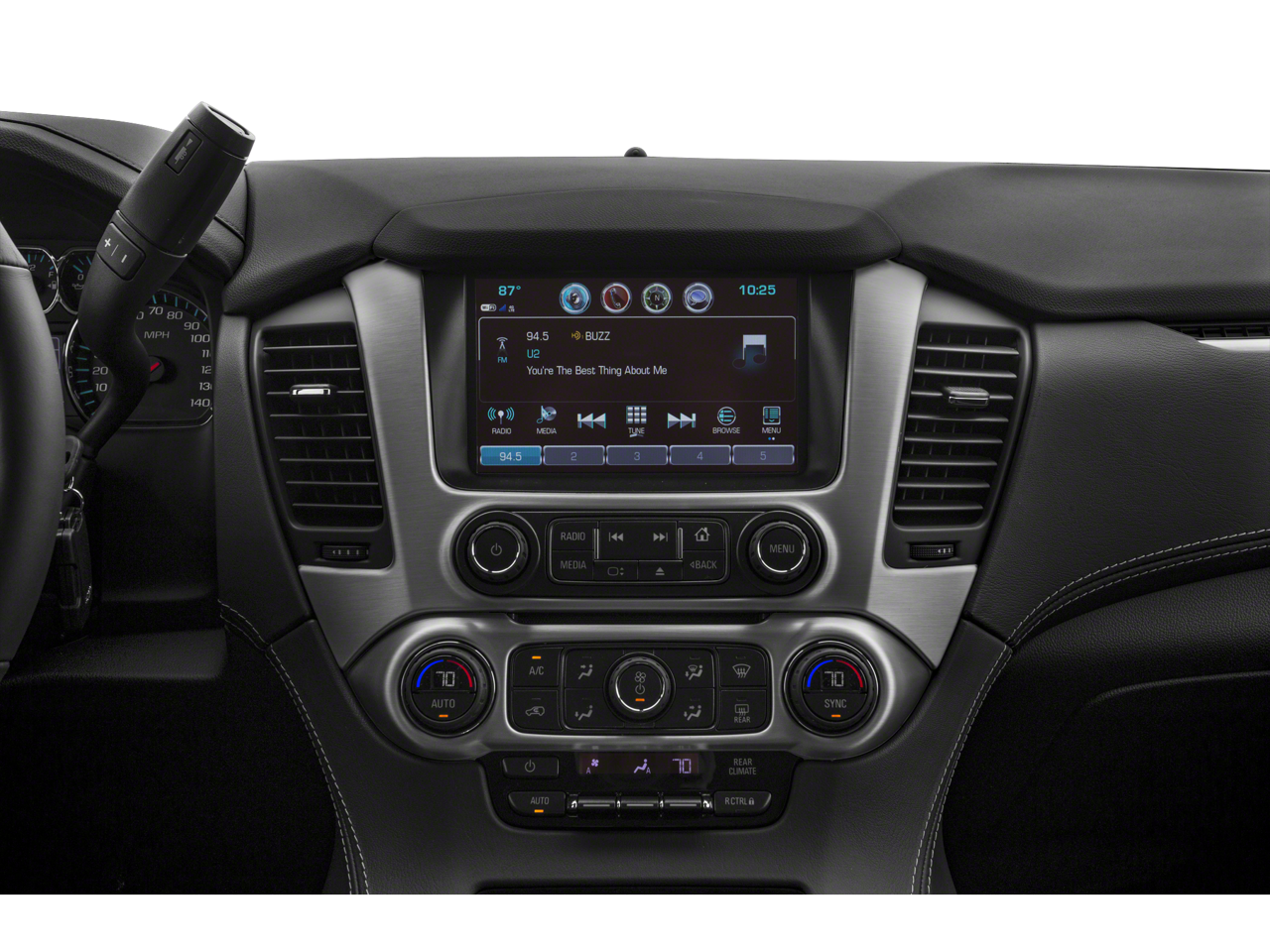 - Audio system, 8" diagonal Color Touch screen with GMC Infotainment System AM/FM/SiriusXM with USB ports and auxiliary jack with seek-and-scan and digital clock, includes Bluetooth® streaming audio for music and select phones; voice-activated technology for radio and phone; and Shop. Featuring Apple CarPlay and Android Auto capability for compatible phone; 5 USB ports and 1 auxiliary jack