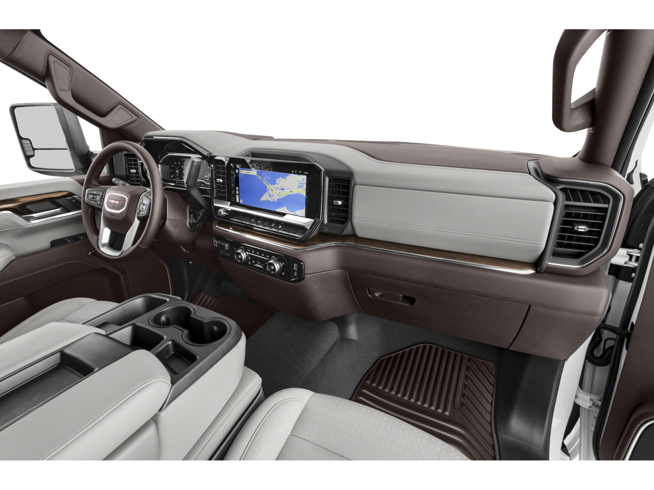 - Chromed tubular assist steps, power-adjustable and heated outside mirrors, and a spray-on bedliner with the GMC logo